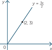 The graph of y = kx is a straight line passing through the origin. Its gradient k is the constant of proportionality. (The values that x can take are often the positive real numbers, but this is not always the case.)