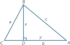 Using Pythagoras’ theorem in triangle BDC: a2 = x2 + y2.